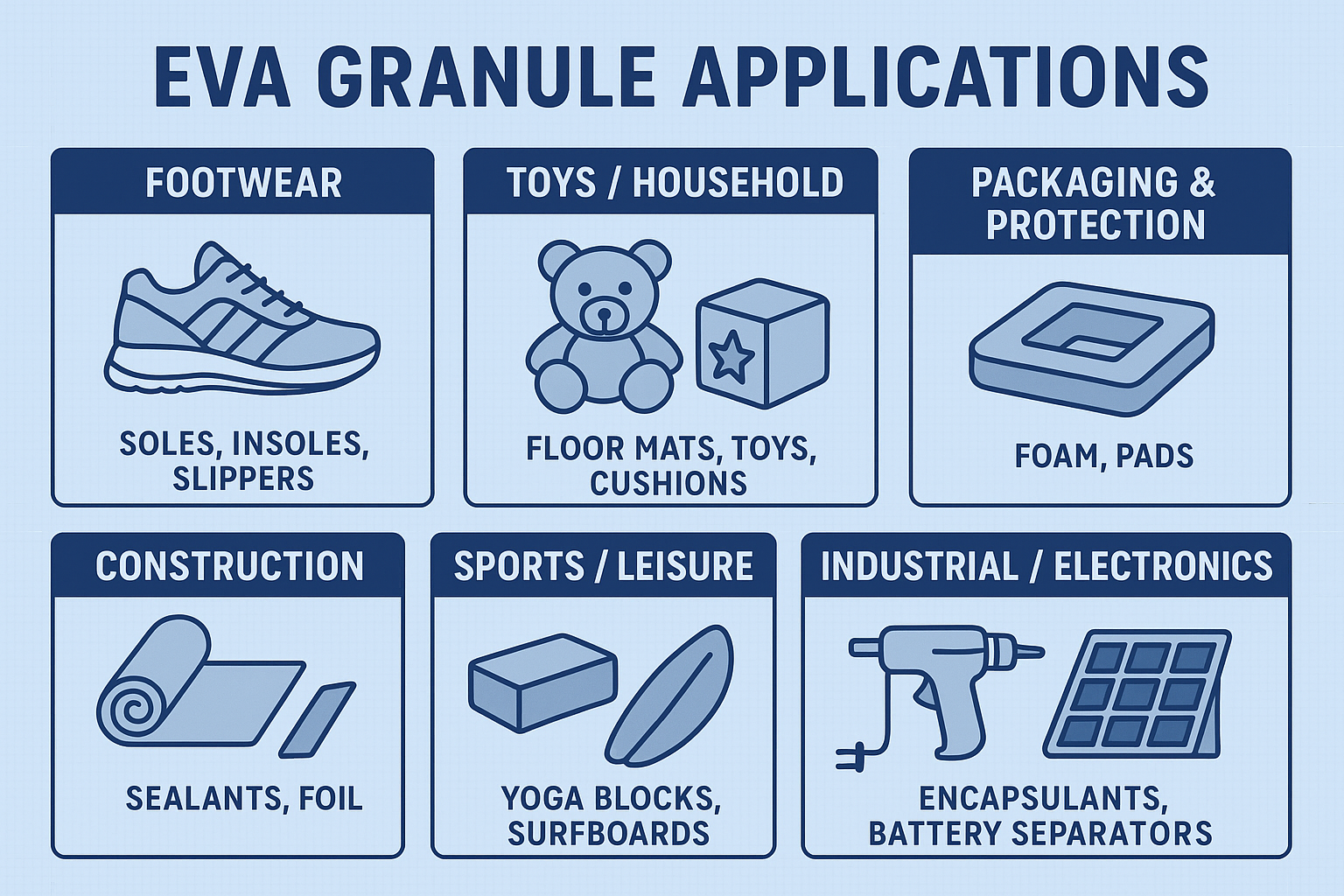 Typical Uses: EVA shoe soles, foam sheets, cables, films, adhesives